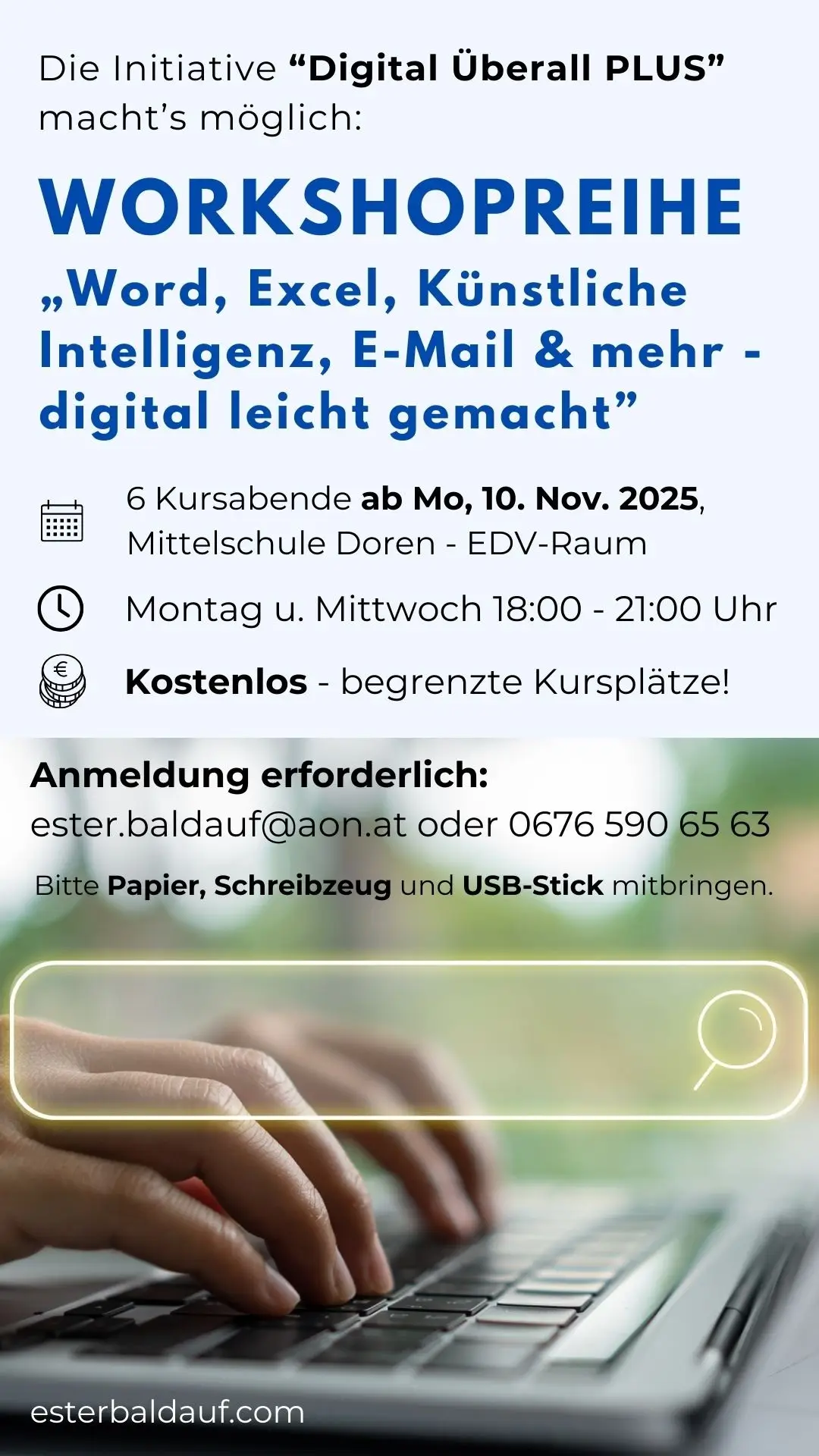 Workshop-Reihe: “Word, Excel, Künstliche Intelligenz, E-Mail & mehr – digital leicht gemacht”